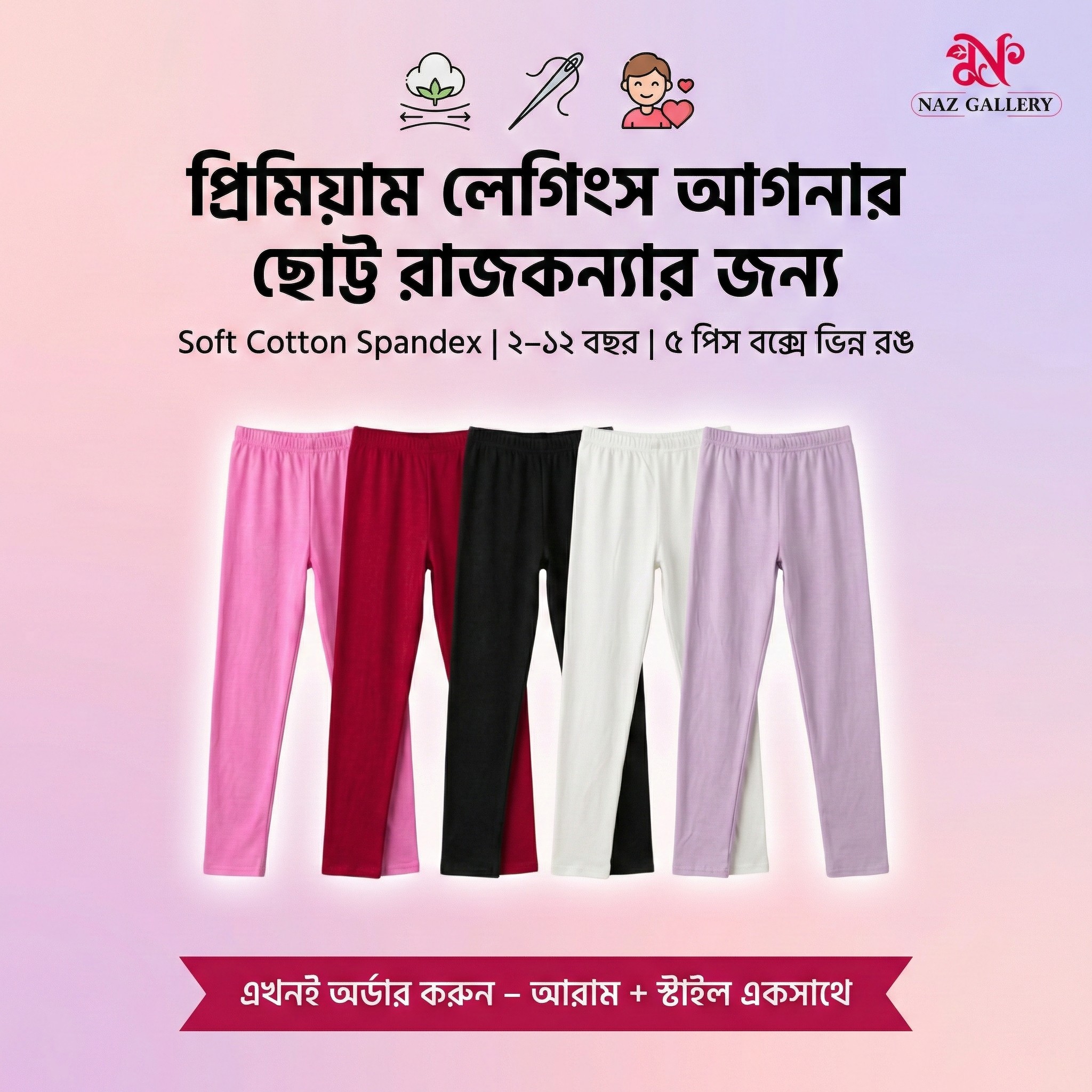 👧 ১–১২ বছরের জন্য প্রিমিয়াম কোয়ালিটির প্রিন্টেড লেগিংস