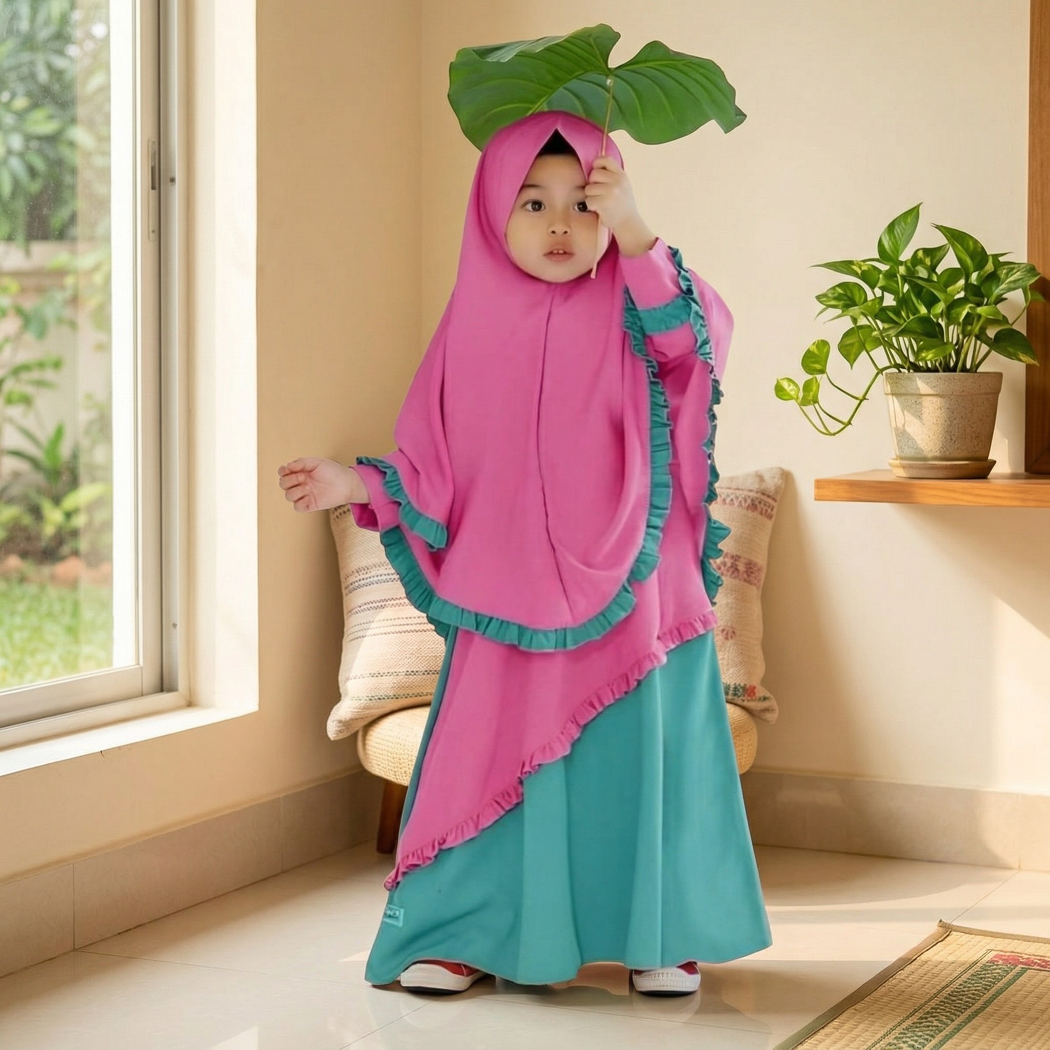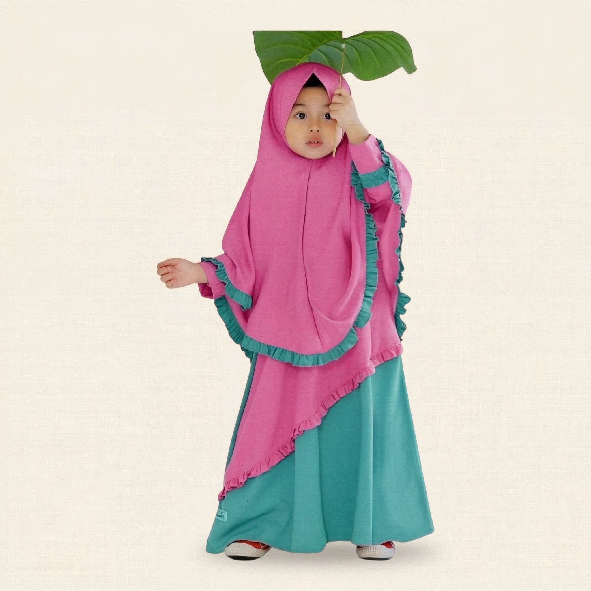 বেবি বোরকা হিজাব সেট — পিংক মিন্ট | Dubai Cherry | বয়স ২–১২ - 1011