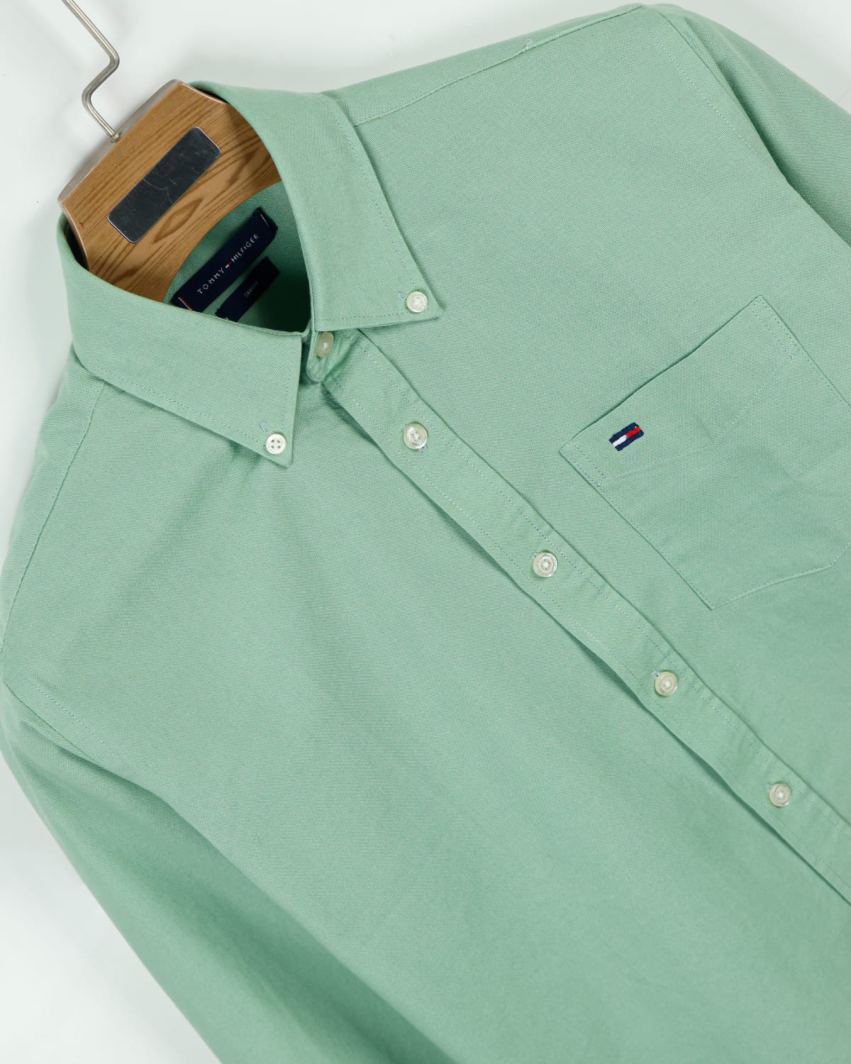 This shirt is made from 100% imported Oxford cotton fabric, offering a soft, breathable, and durable feel for all-day comfort. Designed in a European slim fit, it provides a modern and sharp look. The button-down collar adds a classic touch, while the long sleeves and front pocket make it suitable for both formal and casual wear. Finished with premium stitching for a refined appearance.