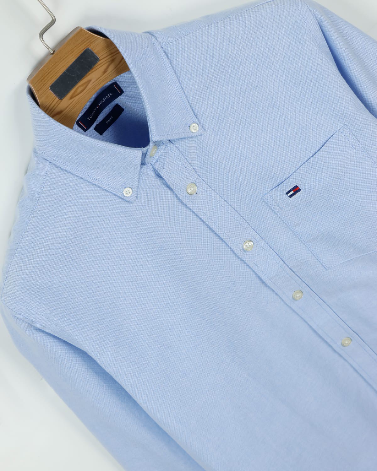 This shirt is made from 100% imported Oxford cotton fabric, offering a soft, breathable, and durable feel for all-day comfort. Designed in a European slim fit, it provides a modern and sharp look. The button-down collar adds a classic touch, while the long sleeves and front pocket make it suitable for both formal and casual wear. Finished with premium stitching for a refined appearance.